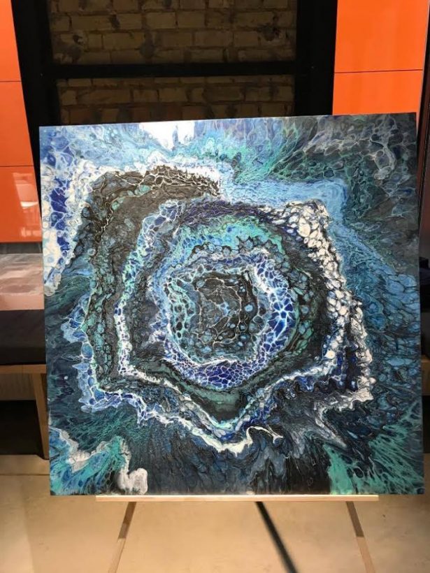 В качестве почетного гостя в «Арт-Хакатоне» приняла участие известная украинская художница Марианна Абрамова, которая во внеконкурсной программе представила свою работу, символизирующую еще не добытый блок биткоина.