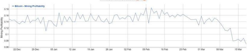 Затраты являются решающим фактором в вопросе прибыльности. Текущие данные показывают, что прибыльность майнинга биткоина сейчас самая низкая за последние два года.