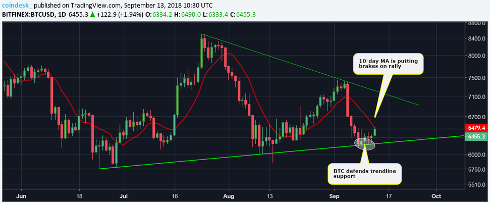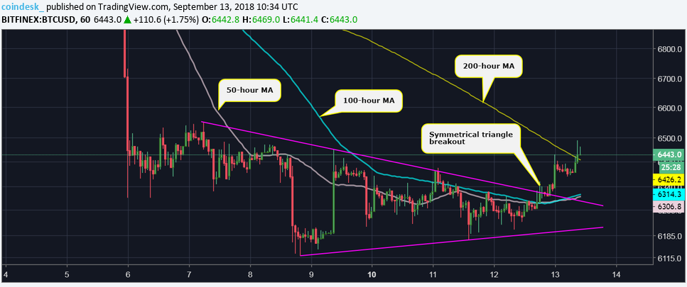 Несколько часов назад «цифровое золото» коснулось отметки $6490 (биржа Bitfinex) и в настоящее время цена первой криптовалюты колеблется у отметки $6450.