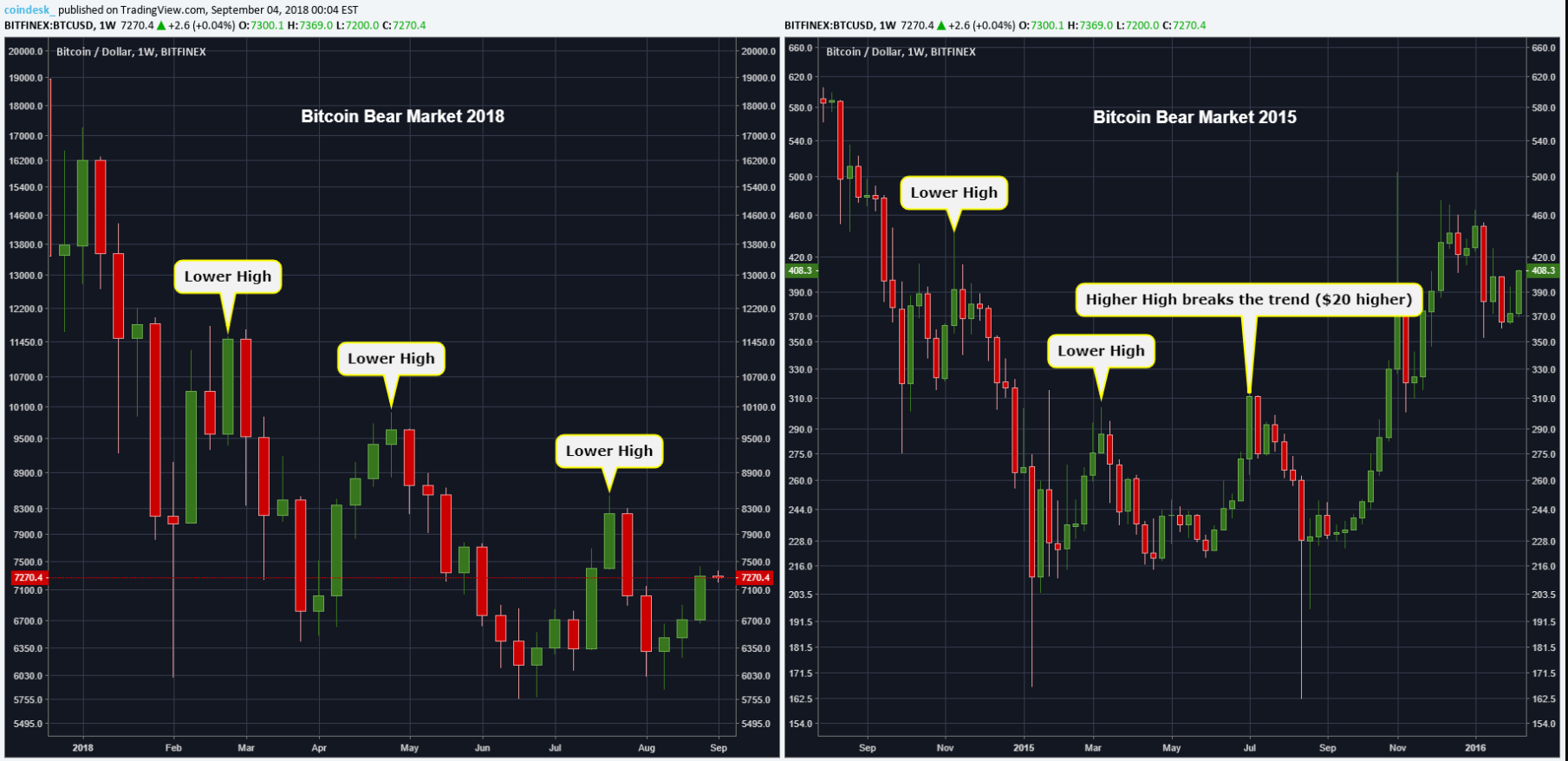 Он также отмечает, что на протяжении текущего года цена биткоина вырисовывает паттерны, во многом схожие с теми, что наблюдались в 2015 году:
