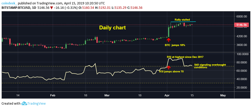 Сильная перекупленность и ряд других технических факторов послужили преградами для цены биткоина на ее пути к отметке $6000, уверен аналитик CoinDesk Омкар Годбоул.