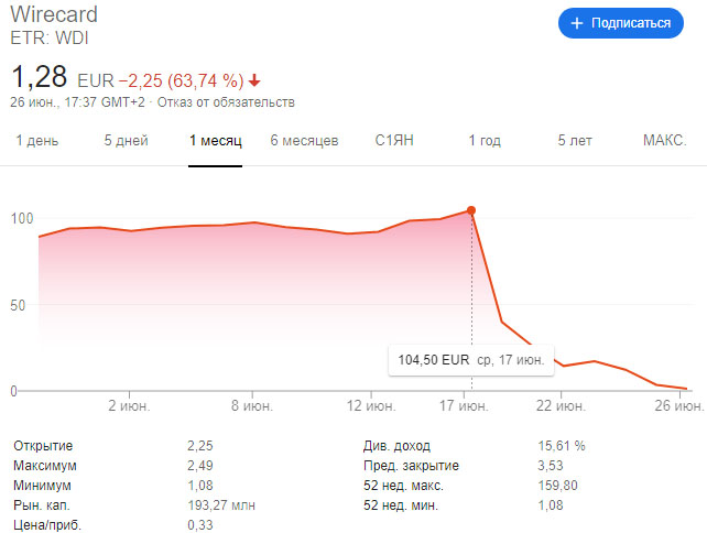 Бывшего CEO немецкой компании Маркуса Брауна, ушедшего в отставку после обнаружения пропажи средств, арестовали по подозрению в мошенничестве. В Wirecard решили пройти процедуру банкротства.