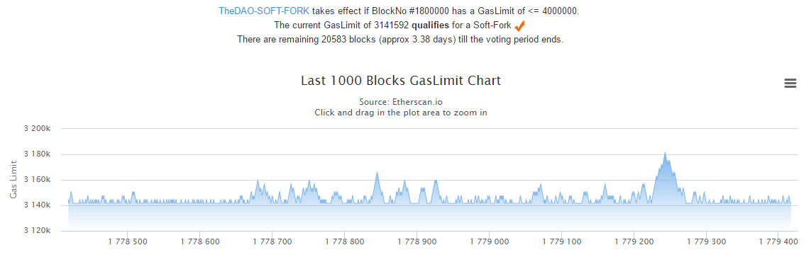 Поддерживающие софтфорк майнеры должны запустить обновление, указав —dao-soft-fork. Запуск этой команды приведет к снижению gas limit блока. Помимо необходимого условия в 4 млн или меньше токенов ETH в качестве топлива, софтфорк будет активирован только при условии, что за него проголосует не менее 51% совокупного хешрейта в сети Ethereum.