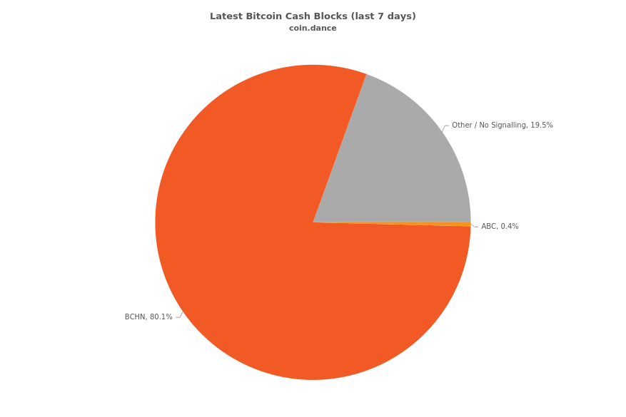За последние семь дней в поддержку BCHN сигнализировало более 80% нод, в поддержку ABC – всего 0,4%.