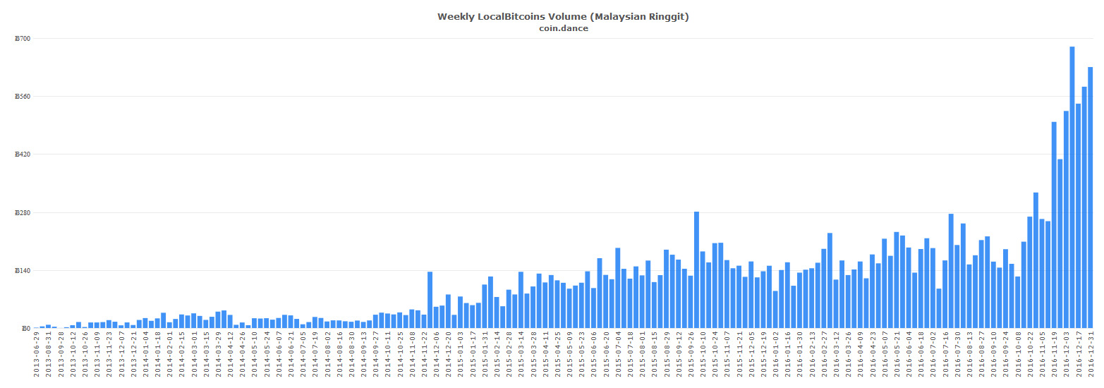 В Малайзии объем торгов также демонстрирует рост. В предновогоднюю неделю он вышел на уровень в 630 BTC (2,650 млн ринггитов).