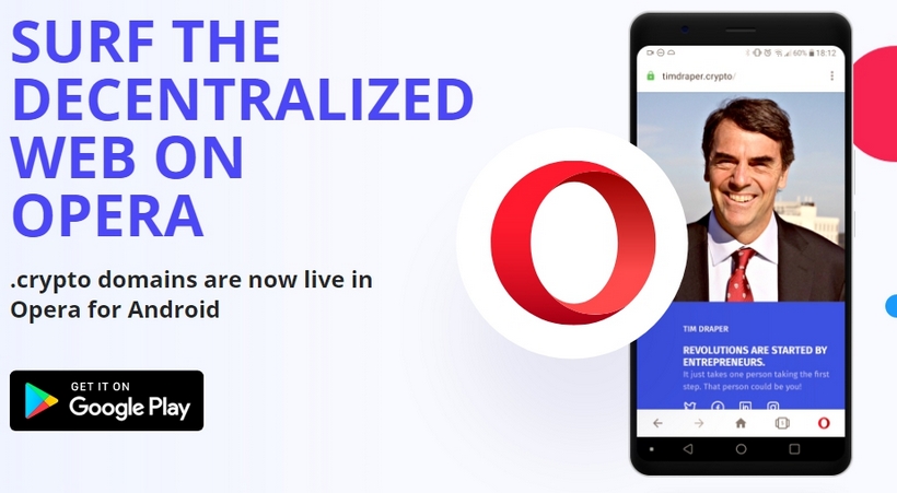 В результате партнерства браузер интегрировал доменное расширение .crypto, предоставляемое стартапом. Это позволяет в приложении Opera для Android просматривать веб-страницы децентрализованных сайтов домена, а также осуществлять криптовалютные платежи.
