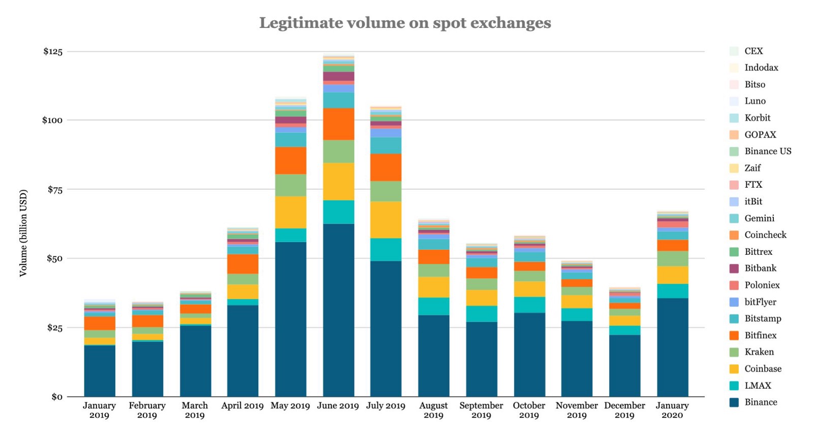 В течение первого месяца 2020 года объемы спотовых торгов увеличились на 70%, достигнув полугодового максимума: