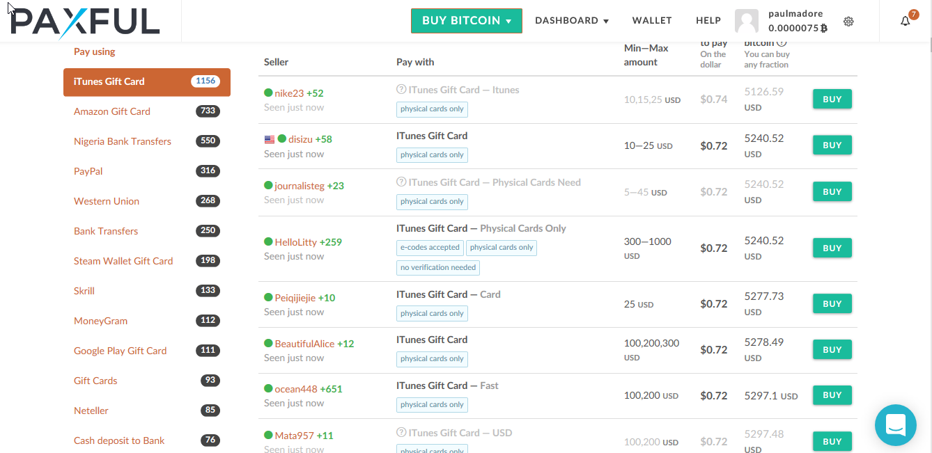 Большинство африканских пользователей Paxful используют в качестве платежного средства подарочные карты iTunes и Amazon. Последние можно купить за местные фиатные валюты.