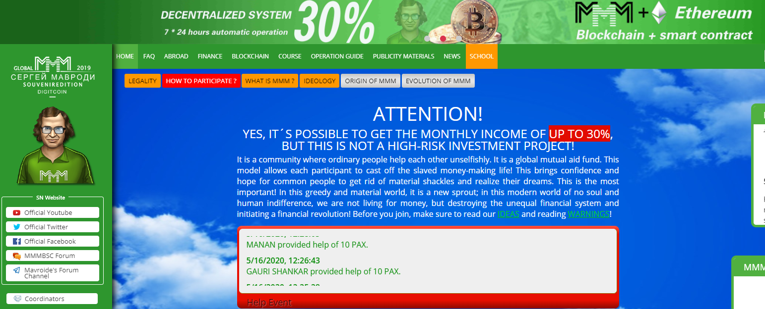 Согласно имеющейся информации, в MMM BSC задействован стейблкоин Paxos Standard (PAX). Также на сайте говорится, что участники «не высокорискового» проекта могут зарабатывать в месяц до 30% прибыли.