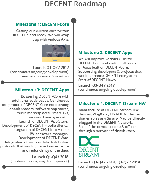 Напомним, в настоящий момент DECENT Network находится на стадии альфа-тестирования, запуск платформы намечен на начало 2017 года. Краудсейл проекта продлится восемь следующих недель. Также команда подготовила дорожную карту с детальным описанием запланированного развития проекта.