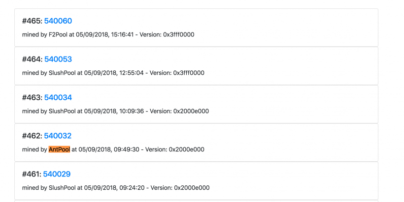Второй по величине майнинговый пул AntPool задействовал алгоритм AsicBoost при добыче блока биткоина #540032. Об этом свидетельствуют данные Asicboost.dance, ресурса, который показывает блоки, добытые при помощи этой подрывающей устойчивость сети технологии, пишет TheNextWeb.Подконтрольный Bitmain майнинговый пул уличили в использовании AsicBoost