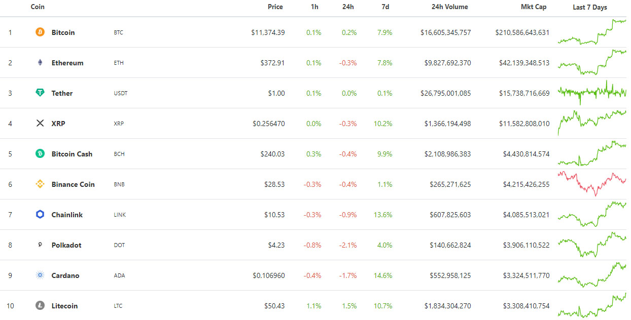 Цена первой криптовалюты в конце недели преодолела психологическую отметку $11 000 и закрепилась над ней. В моменте котировки BTC приближались к $11 500.
