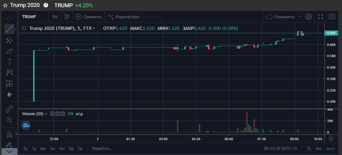 «Цена контракта TRUMP соответствует вероятности того, что Трампа переизберут, — поясняют представители FTX. — Таким образом, если вы уверены на 52% в победе Трампа, TRUMP должен торговаться по $0.52»