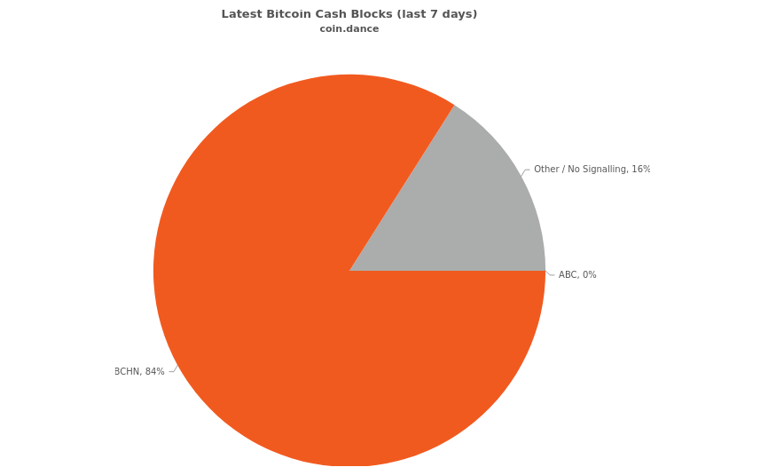 За последние семь дней в поддержку BCHN сигнализировало 83,2% нод, у варианта ABC — нет сторонников, 16,8% — еще не определились со своим выбором.