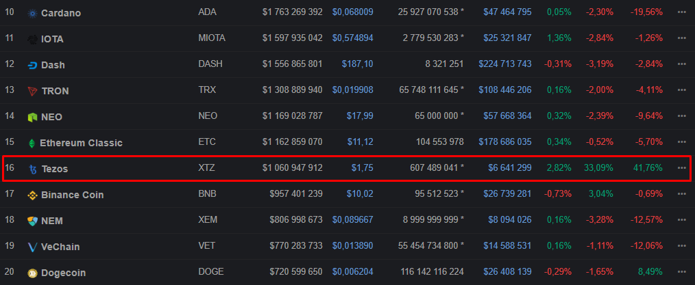 Однако после отставки главы Tezos Foundation Йоханна Геверса развитие проекта активизировалось, многие вопросы были разрешены. Сейчас, на фоне предстоящего события, цена Tezos демонстрирует более чем уверенный рост. Так, лишь за последние сутки курс XTZ вырос на треть: