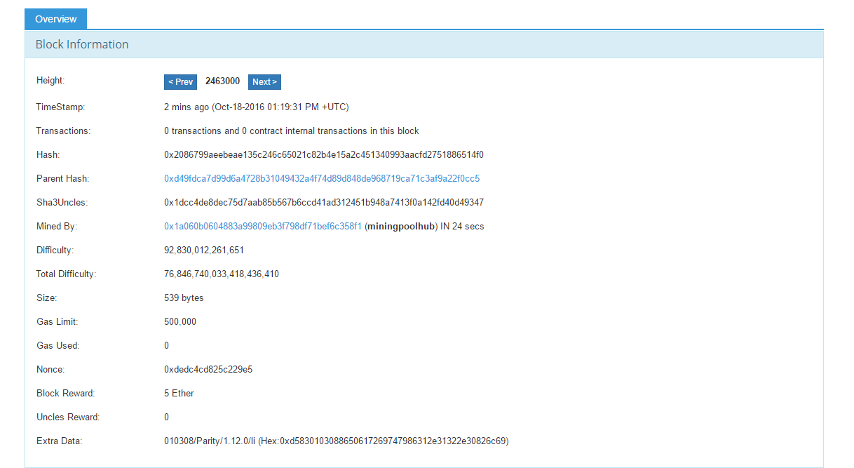 Во вторник, 18 октября, состоялся уже второй в этом году хардфорк сети Ethereum. Как было объявлено ранее, хардфорк произошел на блоке 2,463,000, нашел его miningpoolhub.