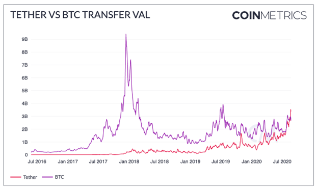Tether обошел биткоин по объему переданной за неделю стоимости