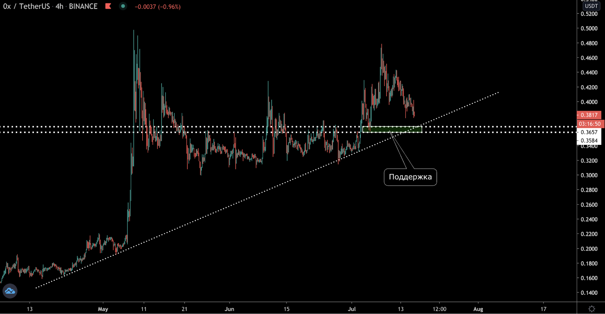 Четырехчасовой график 0x/USDT биржи Binance от TradingView