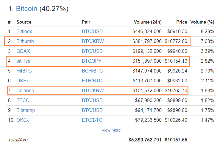 Интересен тот факт, что цена биткоина на южнокорейских и японских биржах значительно выше и достигла долгожданной отметки намного раньше остальных криптовалютных площадок: