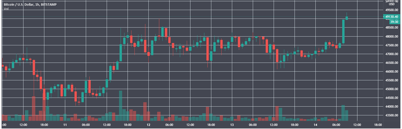 Цена ведущей криптовалюты установила новый исторический максимум, превысив $49 360 (на бирже Bitstamp).