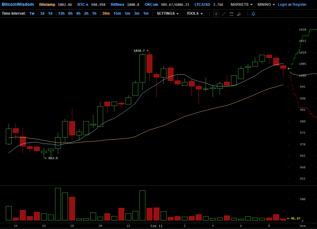 В ночь на субботу, 11 февраля, курс биткоина после резкого падения несколькими днями ранее частично отыграл потерянные позиции, вернувшись к отметкам в районе $1000.
