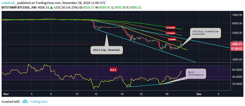 Несмотря на медвежий рынок, продавцы, по всей видимости, выдохлись у отметки $3500. Это открыло возможность для некоторого восстановления цены биткоина. Так, в настоящее время BTC вновь тестирует психологическую отметку $4000.