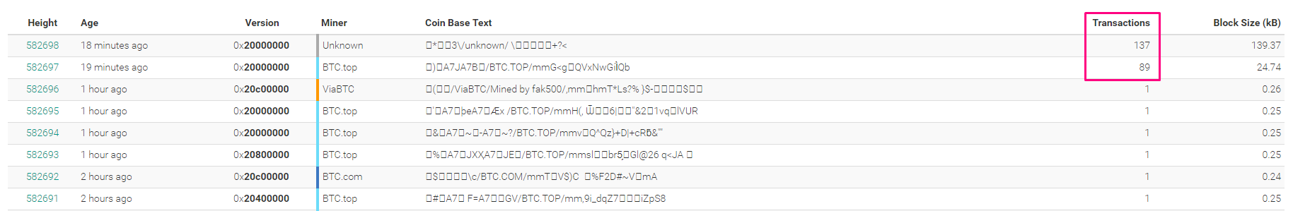 Впоследствии количество транзакций в блоках обновленной (более длинной) сети начало увеличиваться.