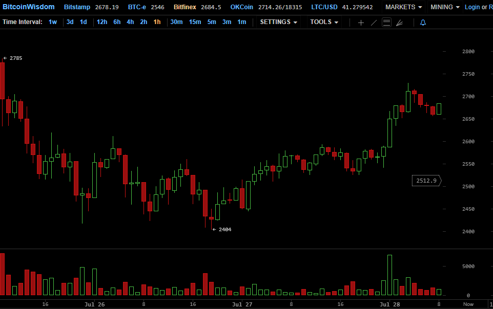 За последние сутки криптовалюты выросла на несколько процентов и в настоящий момент торгуется в районе $2680.