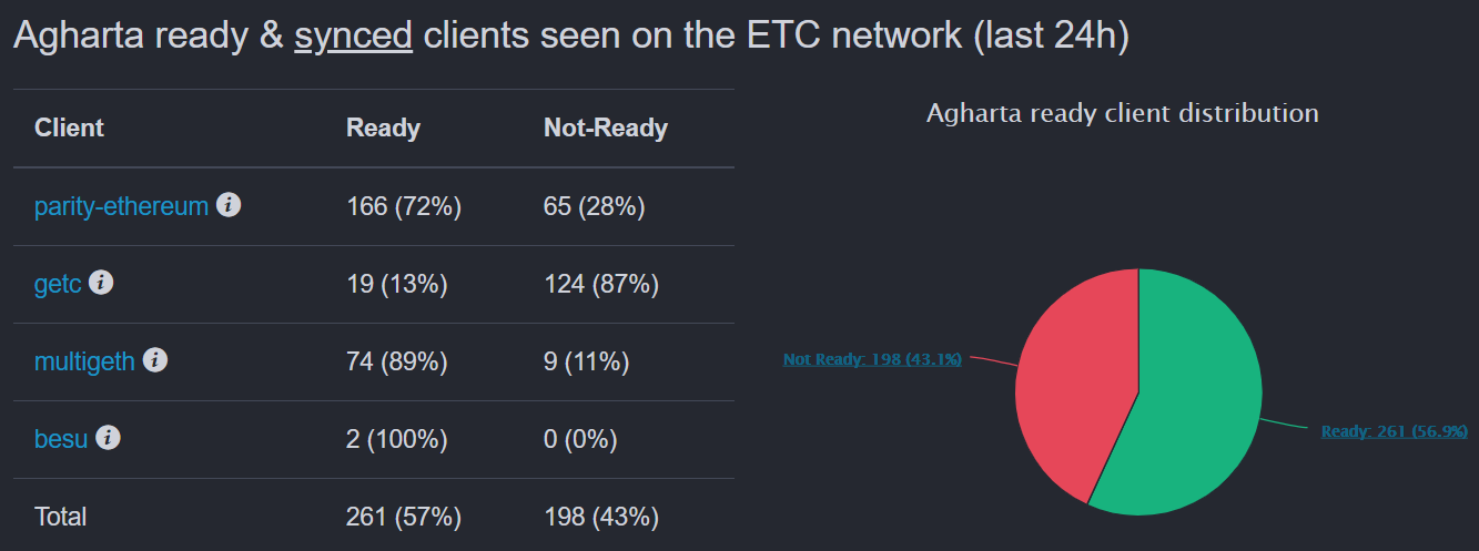 По данным etcnodes.org, в обновлении приняло участие около 57% нод: