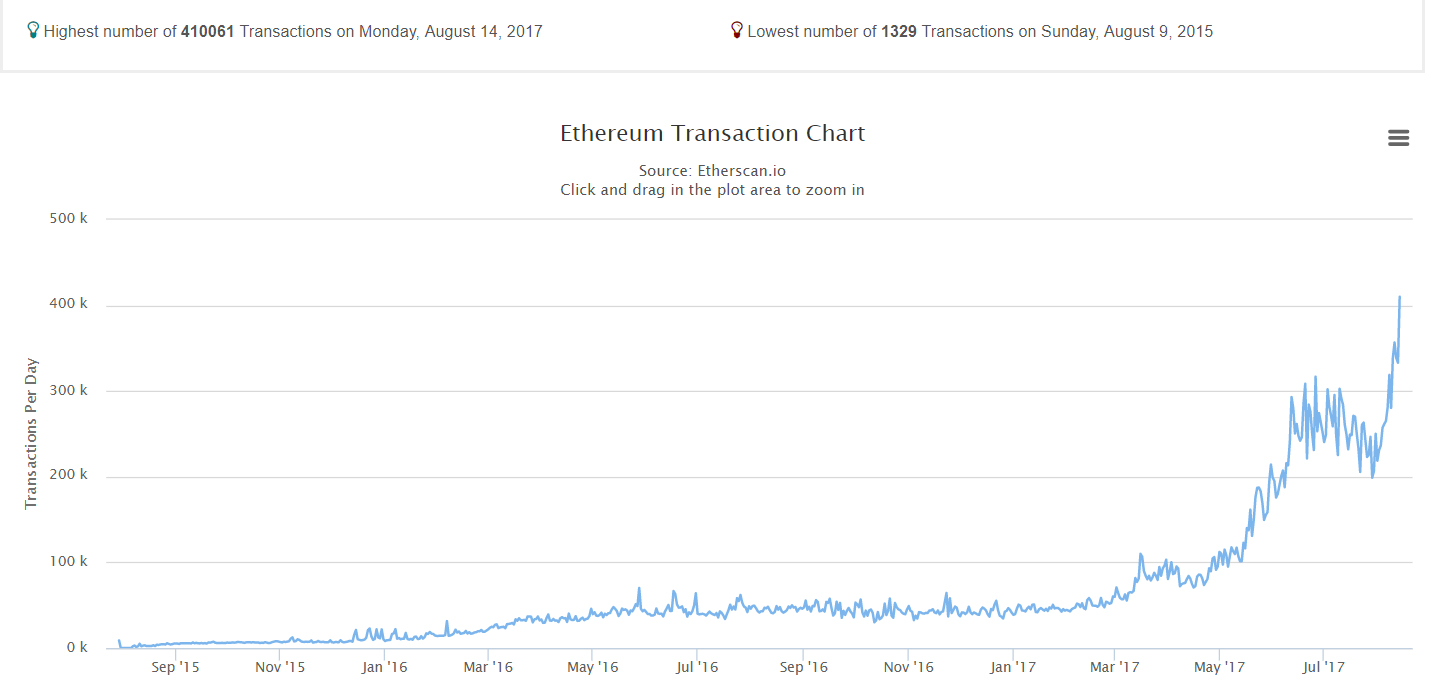 ETH transactions in the last 24 hours at an all time high (410,061):https://t.co/FWb9m1dtVp