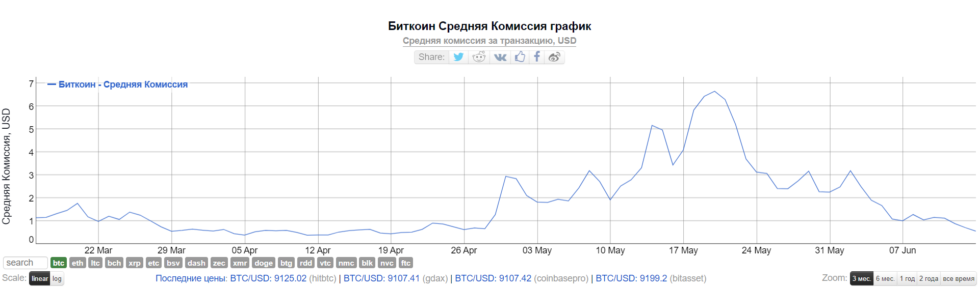 Средний размер комиссии также снизился на 92% с 20 мая, когда этот показатель достиг $6,647. В данный момент средняя комиссия составляет $0,55, что близко к годовому минимуму.