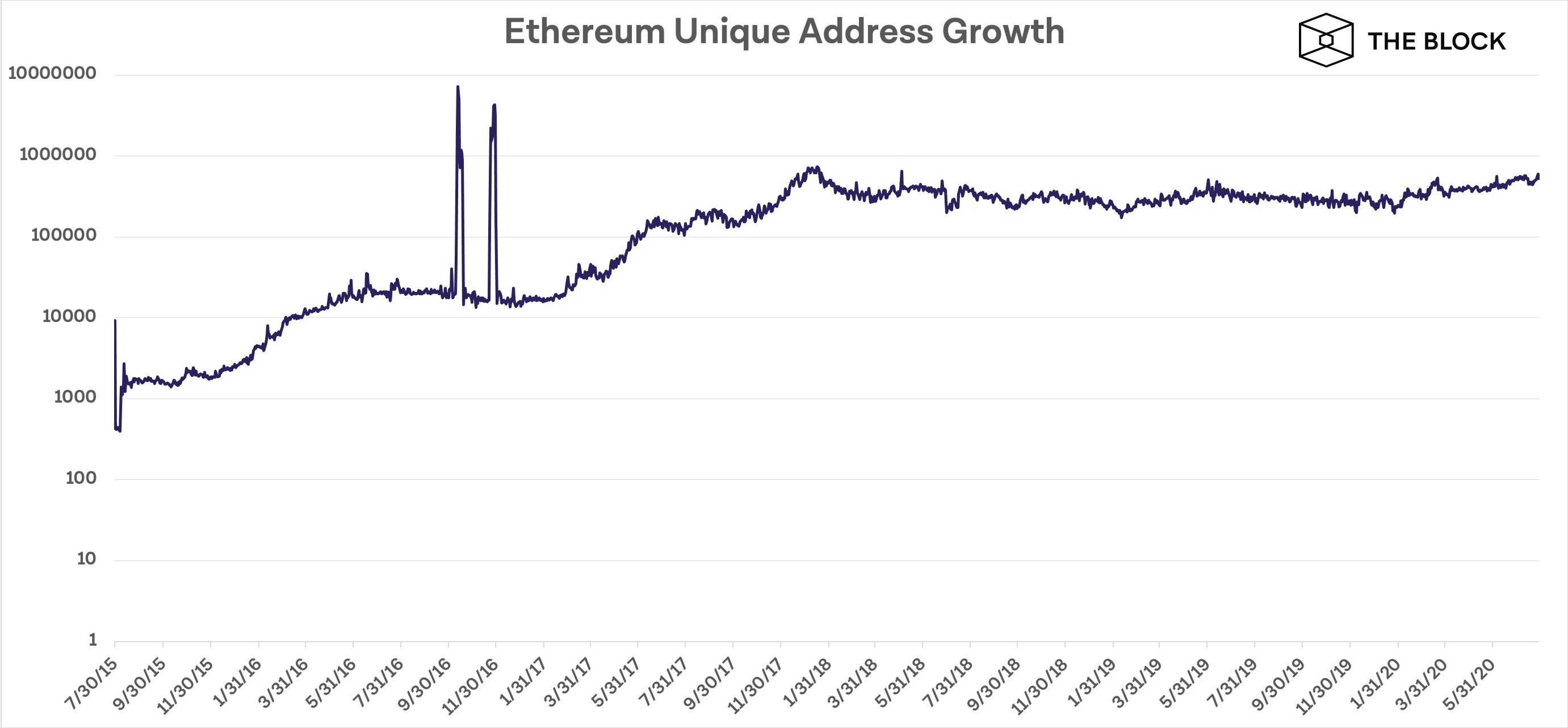 Число уникальных адресов за это время выросло почти в 57 раз, с 9206 до более чем 523 000.