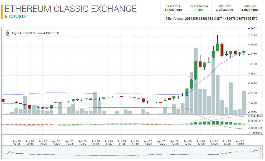 Несмотря на то, что официально о запуске фонда объявлено сегодня, на сайте дата начала его работы указана как 24 апреля. Напомним, именно в этот день можно было наблюдать резкий рост цены ETC. Сегодняшнее известие поспособствовало дальнейшему росту токена, и некоторое время назад ETC вышел на новый исторический максимум по отношению к доллару — $4,78.