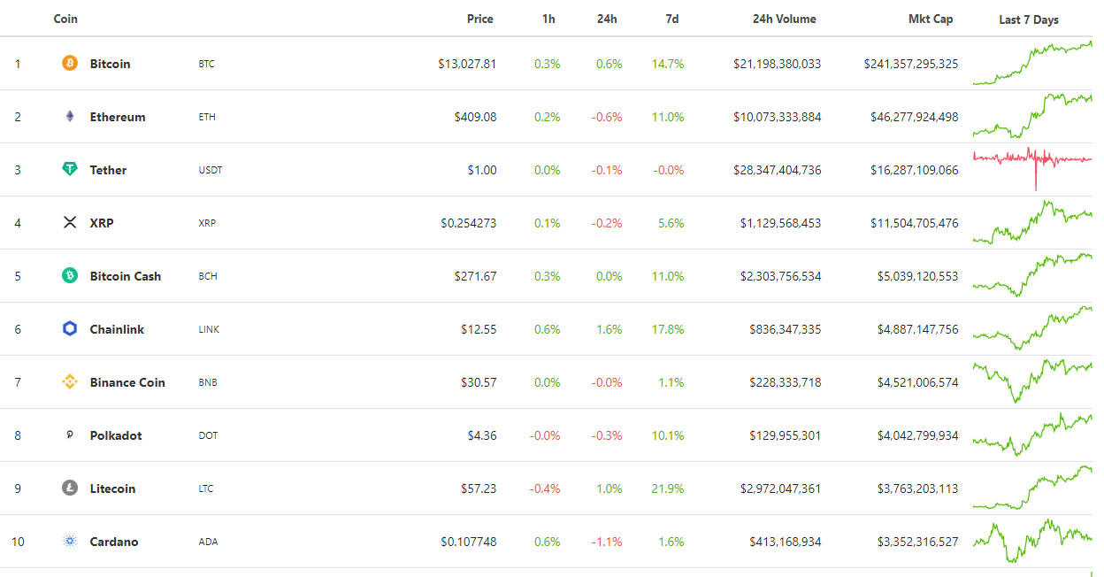 Биткоин обновил максимум 2020 года на отметках выше $13 000