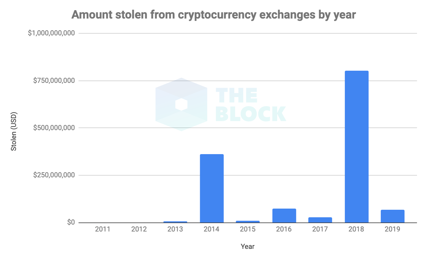 Согласно расчетам аналитиков The Block, за всю историю криптоиндустрии сумма похищенных с крупных бирж средств превысила $1,35 млрд.