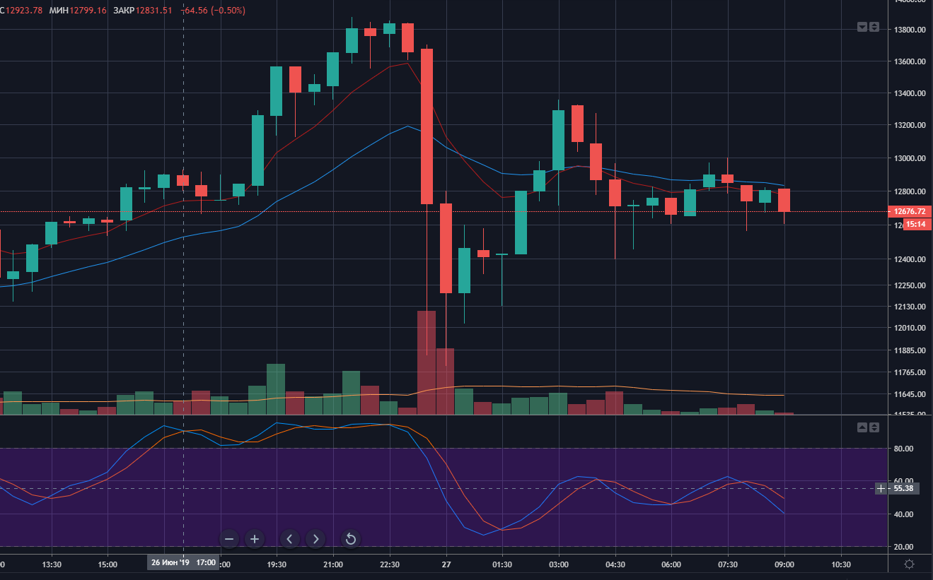 Так, в ночь с 26 по 27 июня цифровое золото уверенно мчалось к отметке $14 000. Однако в какой-то момент стремительный рост сменился впечатляющим падением ниже отметки $12 000: