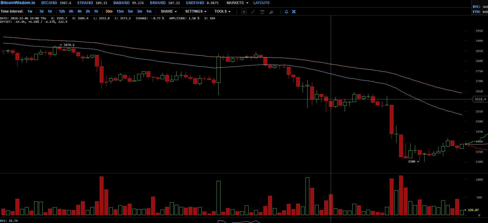 За последние сутки средневзвешенный курс первой криптовалюты снизился на 11,36%, в очередной раз обновив минимум 2018 года.
