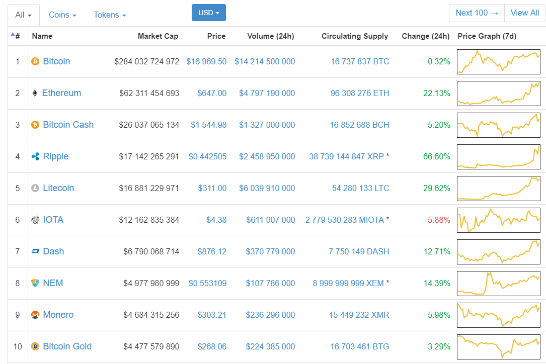 Первая десятка криптовалют на данный момент выглядит следующим образом: