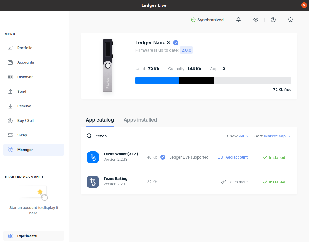 Затем во вкладке Manager установите Tezos Baking App.