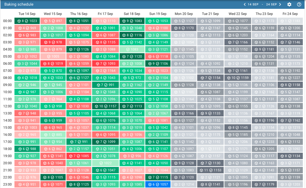 Каждый цикл протокол составляет расписание для активных бейкеров. В нем указано, кто подписывает и подтверждает блоки.