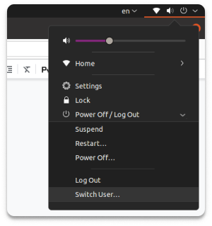 Если вы запускаете узел в WSL или Linux — смените пользователя на tezos. Ранее мы создали отдельного пользователя tezos для безопасного управления узлом, но у него нет доступа к файлам текущего пользователя. Зайдите в меню питания, нажмите Switch user и зайдите в tezos.
