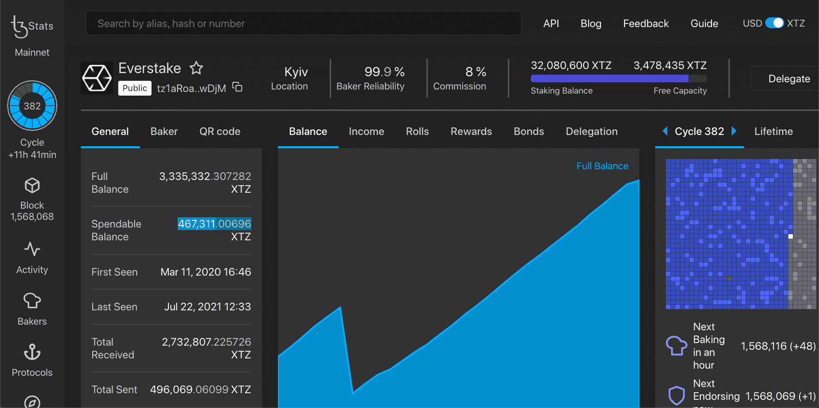 Полученный баланс совпадает с данными обозревателя tzStats.