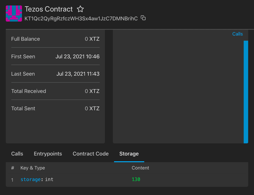 npx ts-node maincall.tsКогда терминал выдаст сообщение о завершении операции, перейдите по ссылке или найдите свой контракт по адресу. Как видите, значение хранилища изменилось.