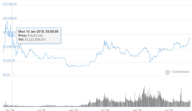 В последний раз биткоин торговался выше этой отметки почти три года назад в январе 2018 года.