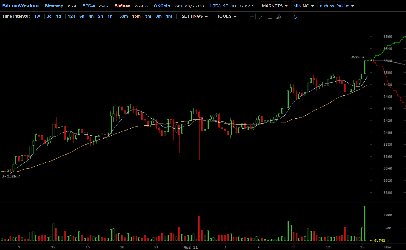 В частности, барьер в $3500 взяли Bitstamp ($3528), Bitfinex ($3525), Kraken ($3547), GDAX ($3524) и другие популярные площадки.