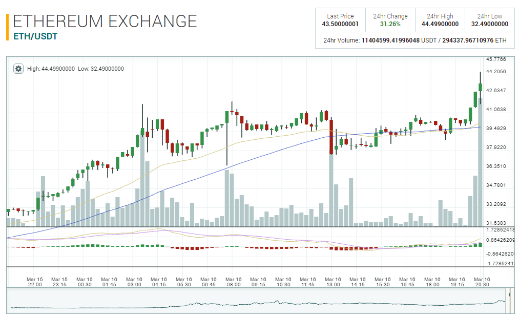 Апдейт 2: В 21:30 GMT цена Ethereum на Poloniex превысила $45.