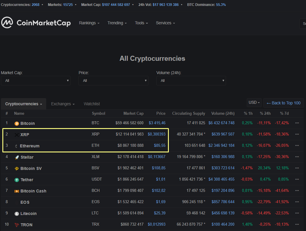 Отдельно стоит отметить, что уверенно идущий против рынка Bitcoin SV оказался уже на пятой ступеньке рейтинга CoinMarketCap.
