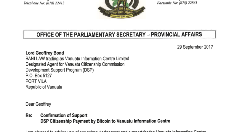 Тихоокеанское государство Вануату официально предлагает возможность стать гражданином страны менее чем за 44 биткоина ($200 тысяч). Об этом сообщает Investment Migration Insider.