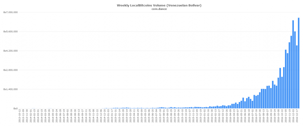 Также растет в Венесуэле и популярность платформы LocalBitcoins: в декабре 2016 года объемы сделок на ней вышли на рекордные за все время показатели.